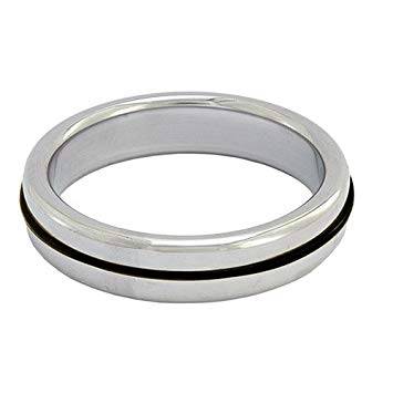 Stainless Steel Slim Cock Ring With Black Band 40 mm.